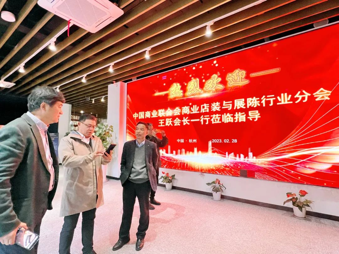 2023年2月28日,中国商业店装与展陈行业城市系列(杭州站)对话沙龙活动结束后,中国商联商业店装与展陈行业分会会长王跃、常务副会长兼秘书长张家铭等一行受邀到访浙商大创业园,商务部智库专家、浙江工商大学中非经贸研究院院长、浙江现代商贸发展研究院常务副院长、浙商大创业园董事长、杭州电子商务研究院执行院长、中国商联商业店装与展陈行业分会特邀专家赵浩兴及团队接待,双方进行座谈交流,共同探讨行业发展问题。